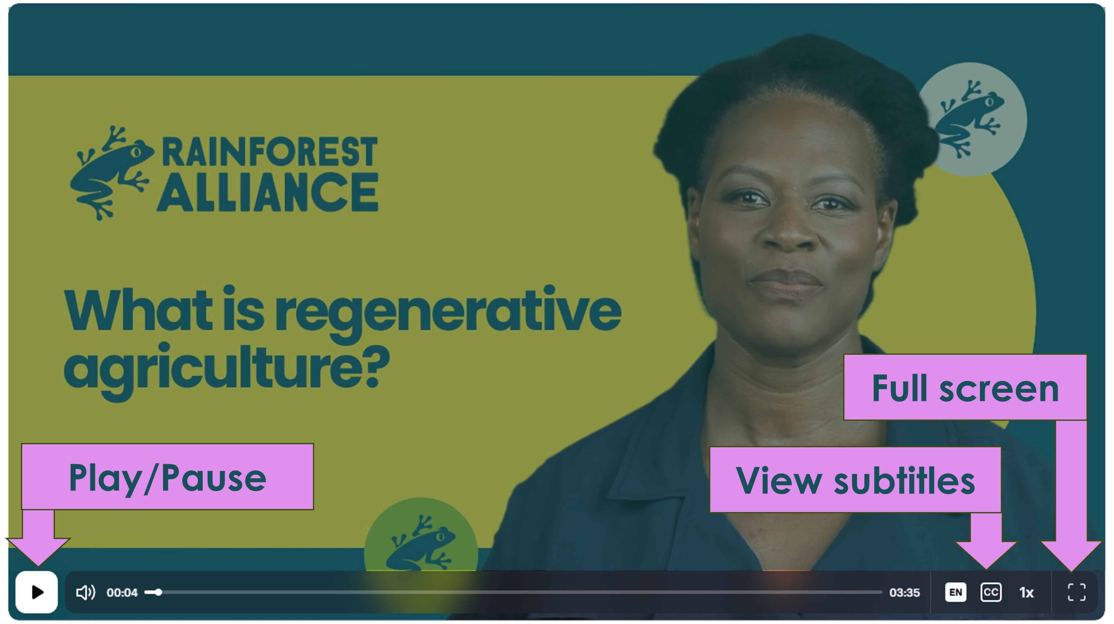 观看视频时,您可以使用全屏按钮 放大,并选择字幕 的打开或关闭。